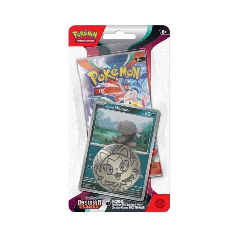 Splatter your rivals with Paldean Wooper. This checklane blister includes a foil Paldean Wooper promo and one Obsidian Flames booster—an easy add‑on for players and collectors.